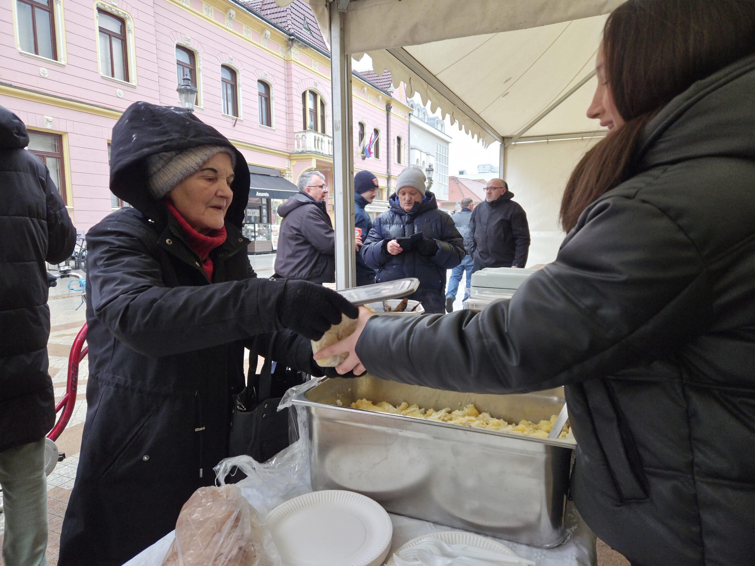 Tradicionalno u vinkovačkoj pješačkoj zoni na Badnji dan organizirano je druženje s građanima uz podjelu posnog obroka u organizaciji Nezavisnog sindikata DZZP Vinkovci.