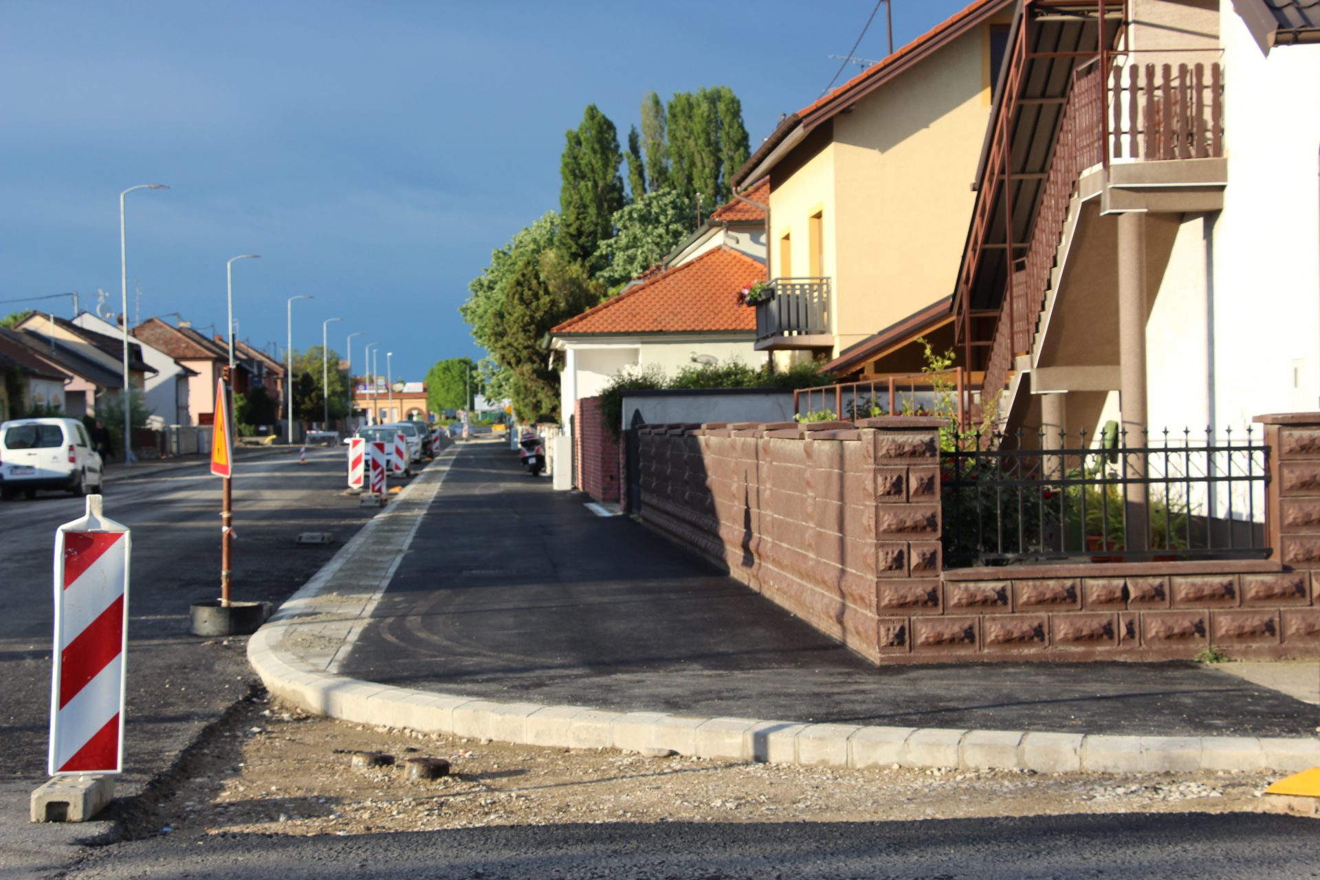 Pješačke i biciklističke staze izgrađene su do ruba postojećih objekata minimalne širine 1,5 metra ovisno o rubu privatne čestice. Biciklističke staze naslonjene su uz pješačke staze kao jednosmjerne i u širini 1,25 metara. Nadalje, uz vanjski rub staza bit će postavljeni i tipski betonski rubnjaci u istoj razini s asfaltom, a zaštitni pojas između ceste i biciklističke bit će popločen betonskim opločnicima. Odvodnja oborinskih voda riješena je zasebnim zatvorenim sustavom odvodnje preko separatora do ispuštanja u Bosut.