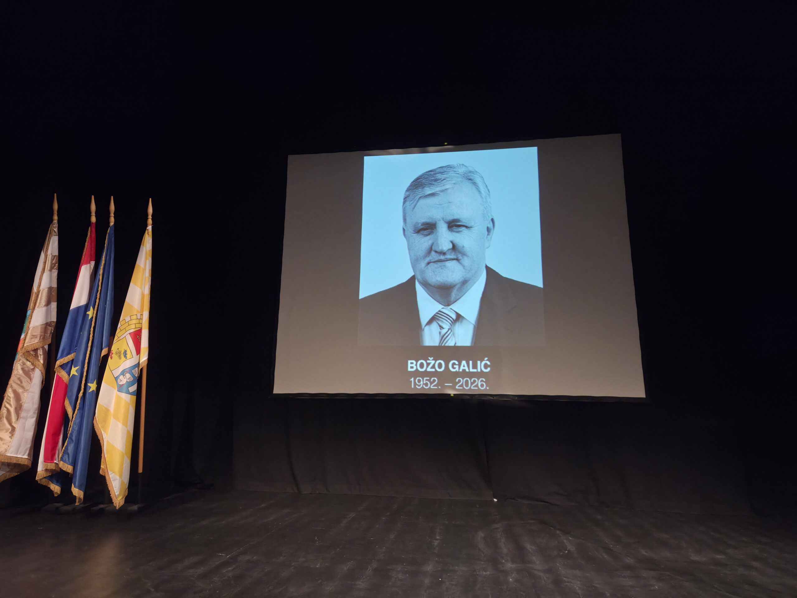Komemoracija je održana u Gradskom kazalištu Joze Ivakića u Vinkovcima, a započela je minutom šutnje za pokojnog bivšeg župana, čovjeka, moglo se čuti, koji je bio arhitekt moderne Vukovarsko-srijemske županije. Sadašnji župan Ivan Bosančić u svom obraćanju rekao je kako je Božo Galić bio vizionar koji je postavio temelje razvoja ovog dijela Hrvatske. „On nije bio samo političar, bio je inženjer u punom smislu riječi. Njegova sistematičnost bila je presudna kada je našu županiju trebalo dizati iz pepela. Dok su ljudi vidjeli ruševine, Božo je vidio projekte, dok su ljudi vidjeli probleme u vodoopskrbi, on je izgradio sustave koji i danas napajaju svako naše selo. Pod njegovim vodstvom naša se županija profilirala kao regija suradnje, posjedovao je rijetku sposobnost okupljanja. Njegova politika bila je politika zajedničkog stola. Vjerovao je da se samo suradnjom, bez obzira na stranačku, nacionalnu i vjersku pripadnost, može graditi stabilno društvo. Pamtit ćemo ga kao lidera u krizama kada je 2014. godine voda zaprijetila Posavini. Božo nije upravljao iz ureda, bio je na nasipima s ljudima i to je bio njegov stil – tiha prisutnost, ali snažna akcija”, istaknuo je Bosančić i dodao kako nam je pokojni župan ostavio županiju boljom nego što ju je zatekao, a to je najveći uspjeh koji jedan javni djelatnik može ostvariti te se zahvalio bivšem županu na svakom satu predanog rada, svakom savjetu i na mirnoći kojom je punih 16 godina vodio županiju.
