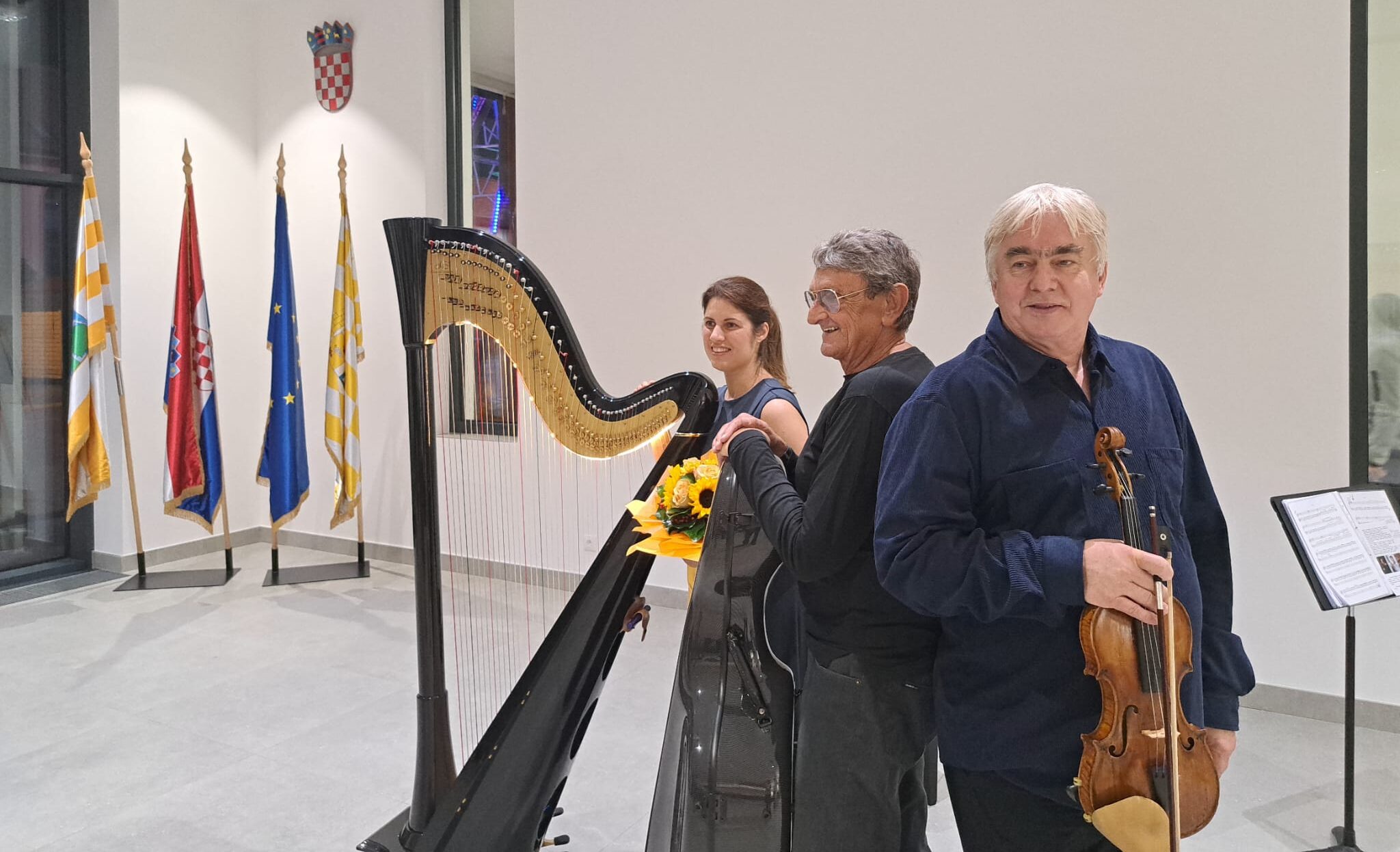 Sinoć je u Gradskoj knjižnici i čitaonici Vinkovci, u sklopu 31. sezone Vinkovačke glazbene scene posvećene 1100. obljetnici Hrvatskog Kraljevstva, održan koncert komornog trija Crisostomo – violinista Krešimira Marmilića, violončelista Matije Štajcera i harfistice Veronike Lemishenko.