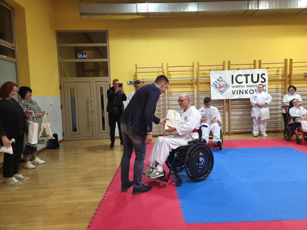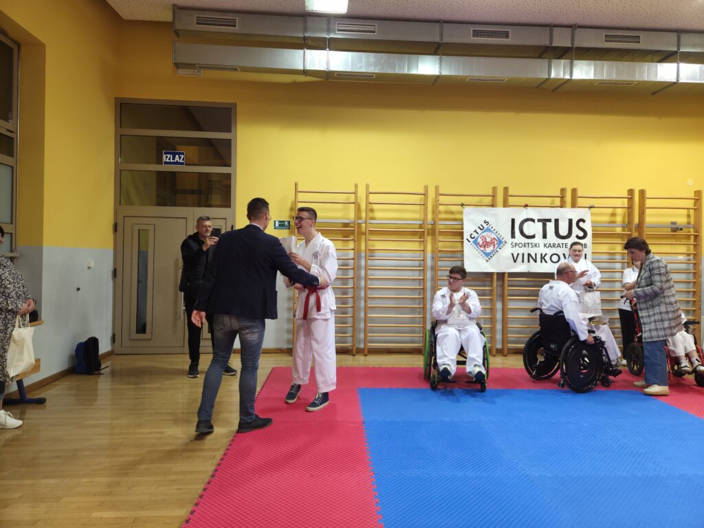 Na nedavno održanom Prvenstvu Hrvatske u parakarateu članovi Športskog karate kluba „ICTUS” Vinkovci osvojili su ukupno četiri odličja, dva zlata te po jedno srebro i broncu. Marko Mađar i Mihael Starčević osvojili su zlatne medalje, Krešimir Sučić srebro, dok je do bronce došao Mihael Starčević i to u svom prvom nastupu na Prvenstvu Hrvatske u parakarateu. Tim povodom na večerašnjem treningu posjetio ih je gradonačelnik Vinkovaca Josip Romić koji je istaknuo kako je izuzetno ponosan na naše parakarataše i Karate klub ICTUS. „U posljednje 3 godine osvojili su čak 41 odličje te u svojim redovima imaju pet prvaka Hrvatske. Sport je iznimno težak jer zahtjeva određena odricanja i trud, stoga sam još više ponosan na naše parasportaše koji moraju uložiti dvostruko više energije kako bi došli do ovakvih rezultata. Grad će uvijek biti uz njih, stojimo im na raspolaganju i oni su pravi putokaz jer svojom upornošću, voljom i radom pokazuju da nijedna prepreka nije nepremostiva”, rekao je Romić i zahvalio se svim sportašima, trenerima, članovima kluba, volonterima iz udruge TRN kao i roditeljima što podržavaju rad naših mladih sportaša.