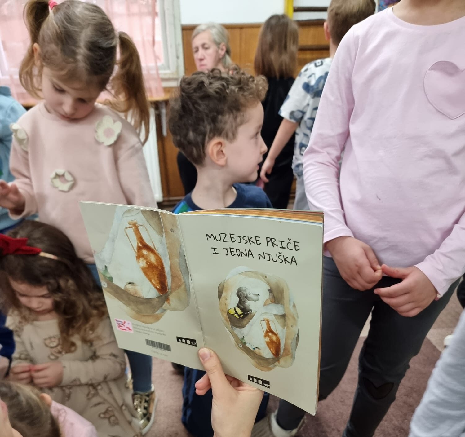 Kustosica etnologinja Nikolina Novaković i kustosica pedagoginja pripravnica Lucija Tomašević skupinama Pčelice, Aviončići, Vrapčići, Leptirići i Vilenjaci čitale su Priču o češlju i Priču o svirali iz publikacije Muzejske priče i jedna njuška, kroz koje su naučili više o muzejskim predmetima, pričama koje oni nose i važnošću čitanja od najranije dobi.