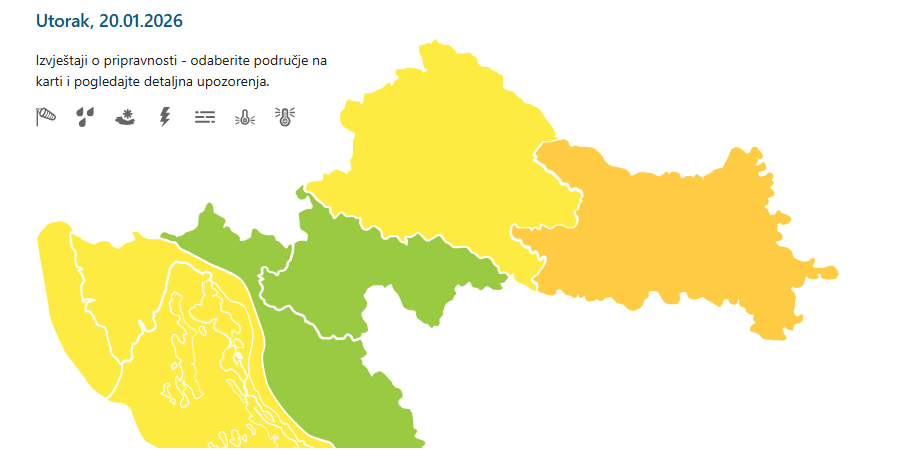 „Budite spremni na hladnoću. Zdravstveni rizik moguć je kod osjetljive populacije, ponajprije kod starijih, male djece i beskućnika. Slušajte i postupajte prema savjetima danima od nadležnih službi”, piše na stranici.