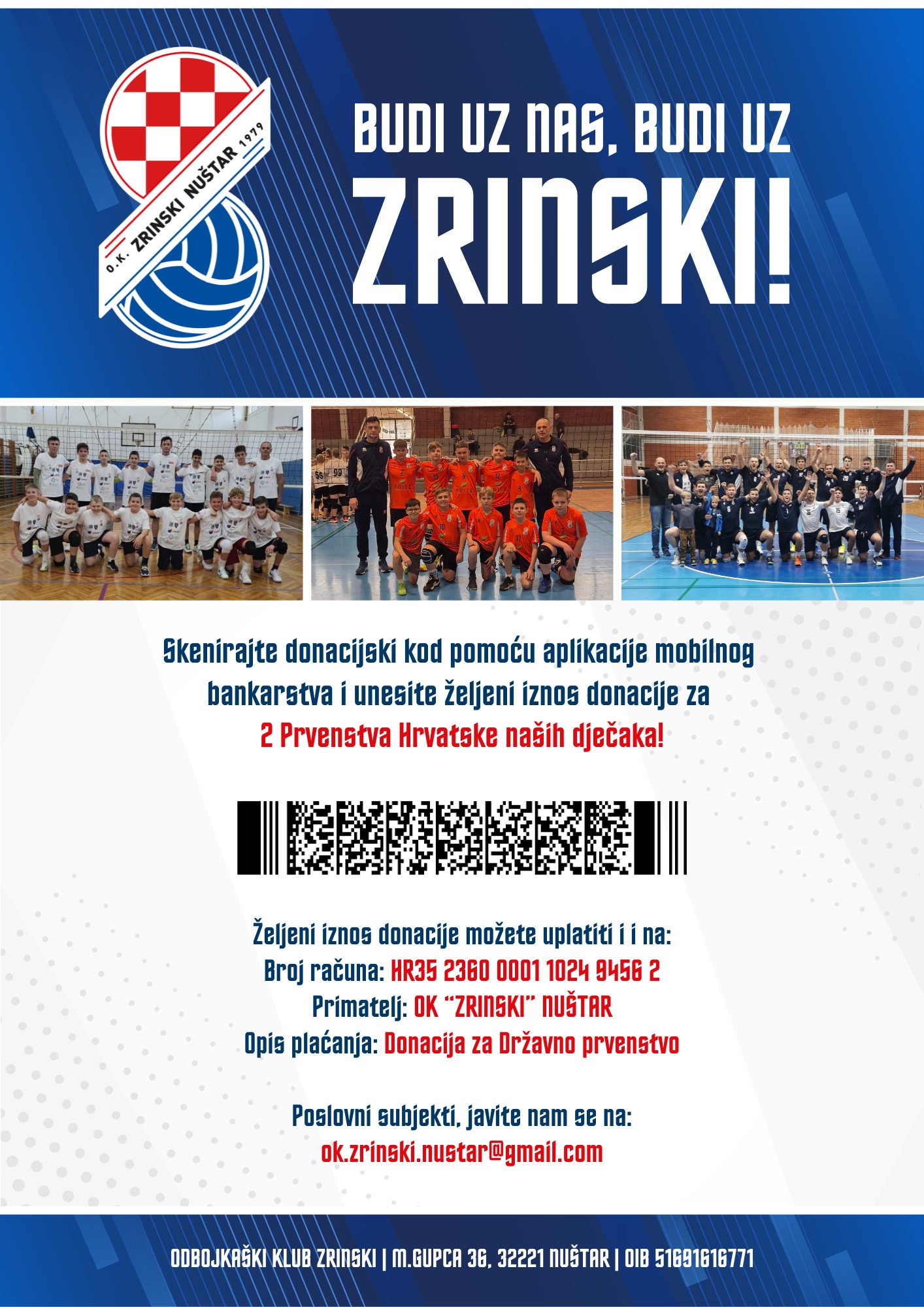 Kako su naveli, svi koji su voljni i žele, sukladno svojim mogućnostima, pomoći klubu i omogućiti dječacima pravu sportsku i fer borbu na terenu, to mogu učiniti isključivo izravnom uplatom na račun te skeniranjem 2D barkoda u svojoj mobilnoj aplikaciji banke.