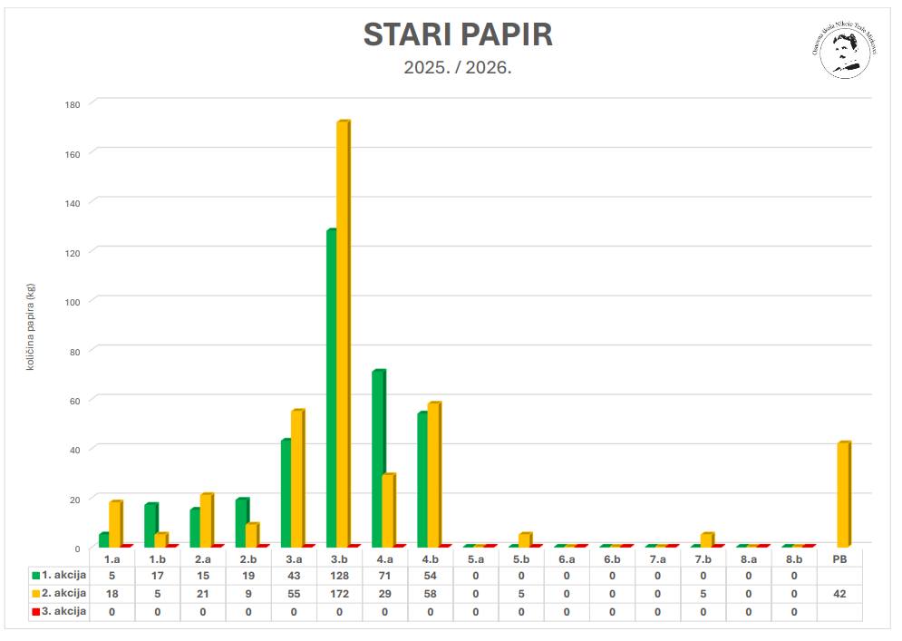Kako navode, ukupna količina prikupljenog papira iznosi 599 kg, od čega su učenici prikupili 419 kg.