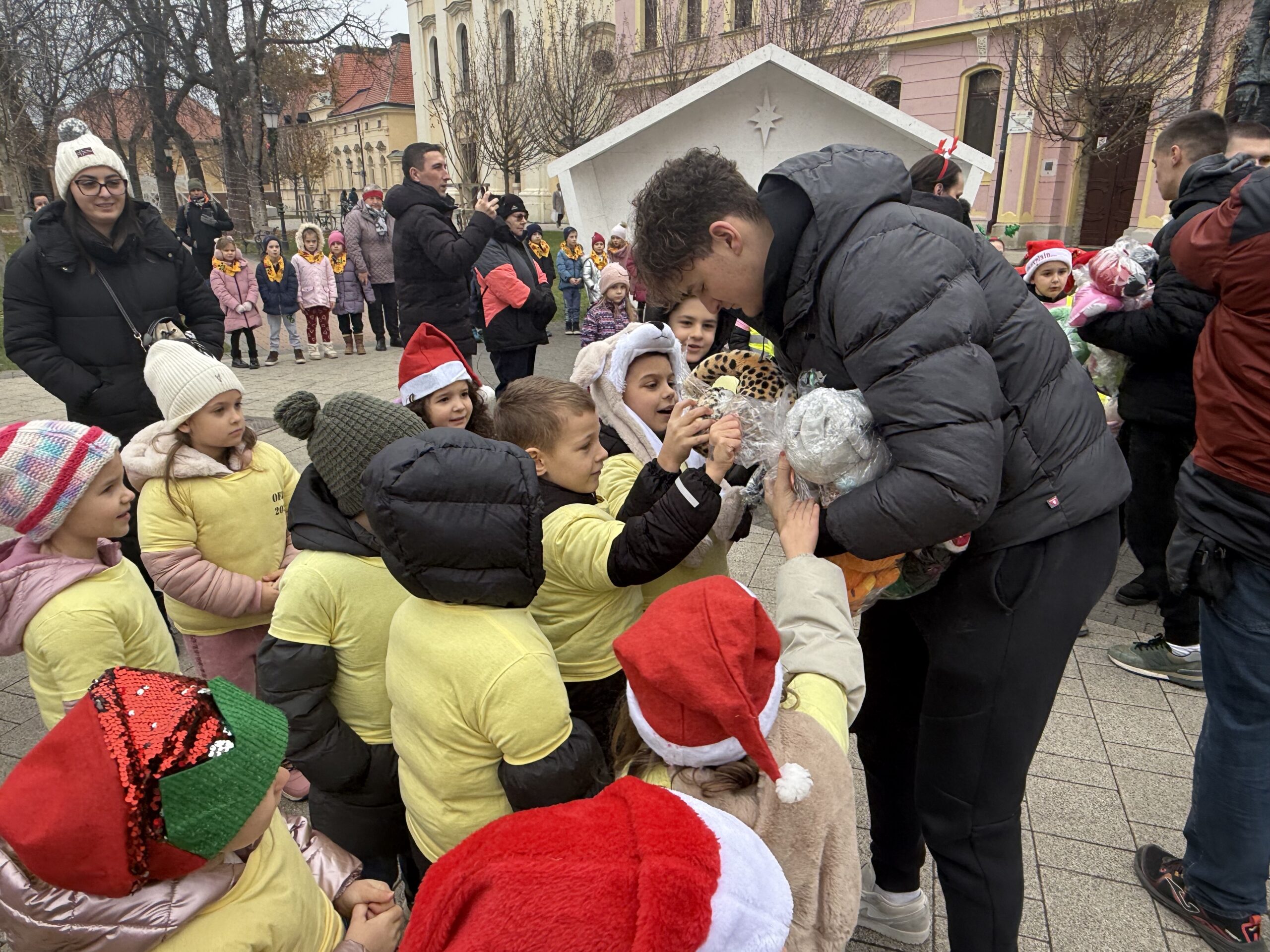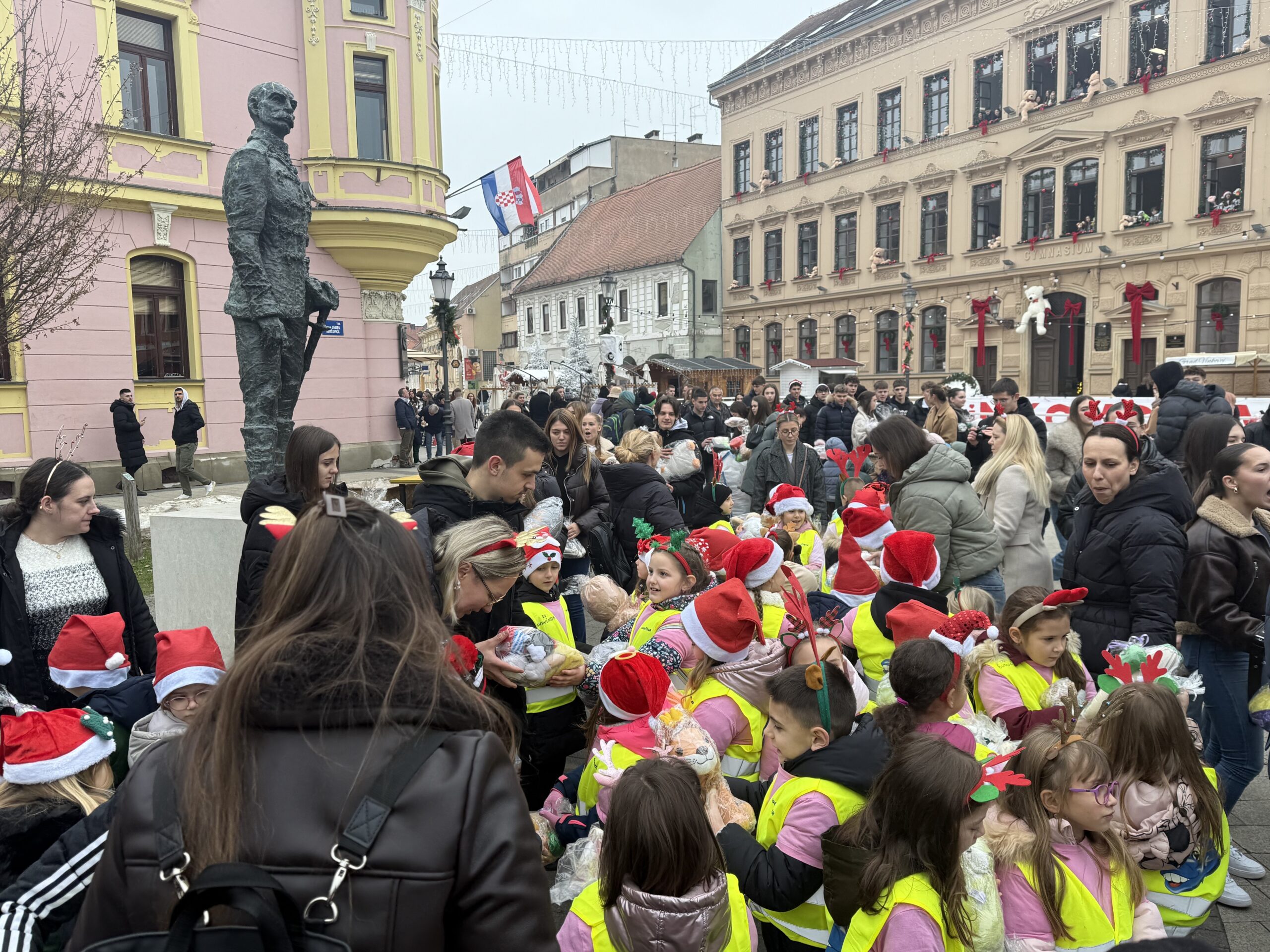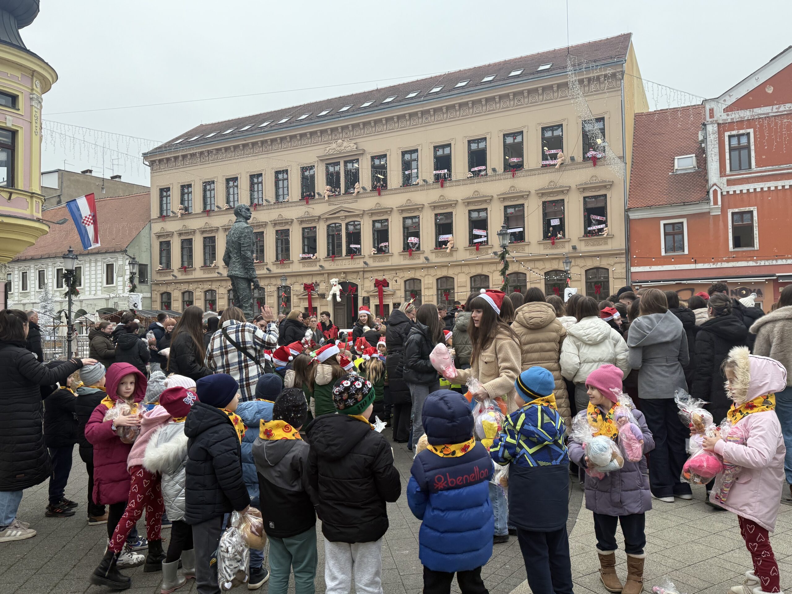 Uoči Božića, Vinkovci su još jednom pokazali koliko veliko srce imaju. Točno u podne, ispred Gimnazije Matije Antuna Reljkovića, stotine plišanih igračaka predane su u ruke djece, u prizoru koji je dirnuo sve okupljene.