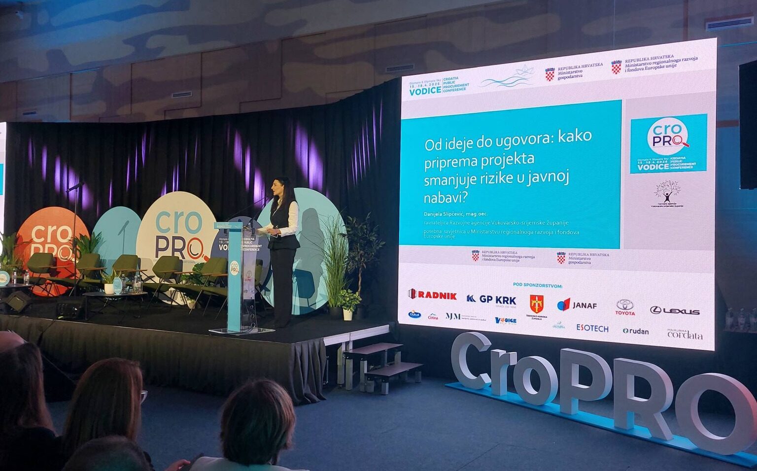Ravnateljica Razvojne agencije Vukovarsko-srijemske županije i posebna savjetnica u ministrice regionalnoga razvoja i fondova EU, Danijela Slipčević, sudjelovala na CroPRO 2026. konferenciji u Vodicama. U svom izlaganju ponudila je detaljan i praktičan uvid u put od početne ideje do sklapanja ugovora. Njezino predavanje otvorilo je ključna pitanja kvalitete pripreme projekata, naglašavajući kako upravo faza javne nabave predstavlja presudnu točku u kojoj se teorija susreće sa stvarnošću.