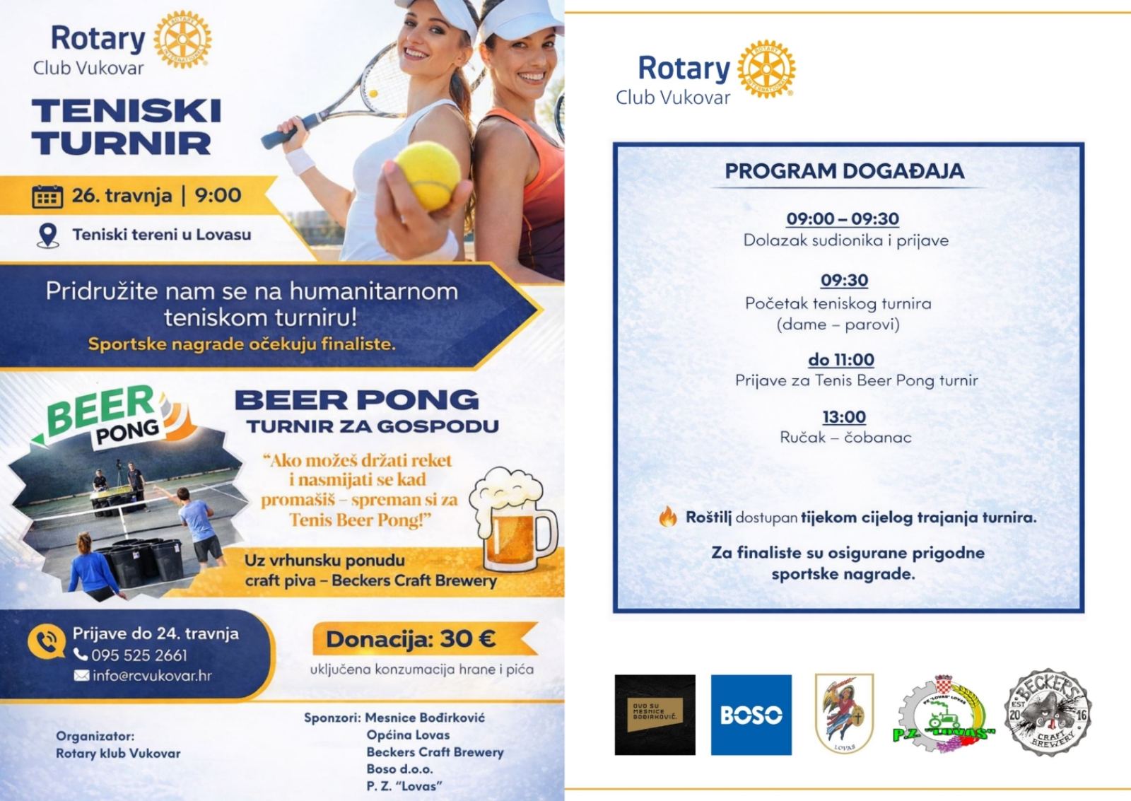 Općina Lovas u suradnji s Rotary Club Vukovar organizira humanitarni sportski događaj koji će biti održan u nedjelju, 26. travnja, na teniskim terenima u Lovas.