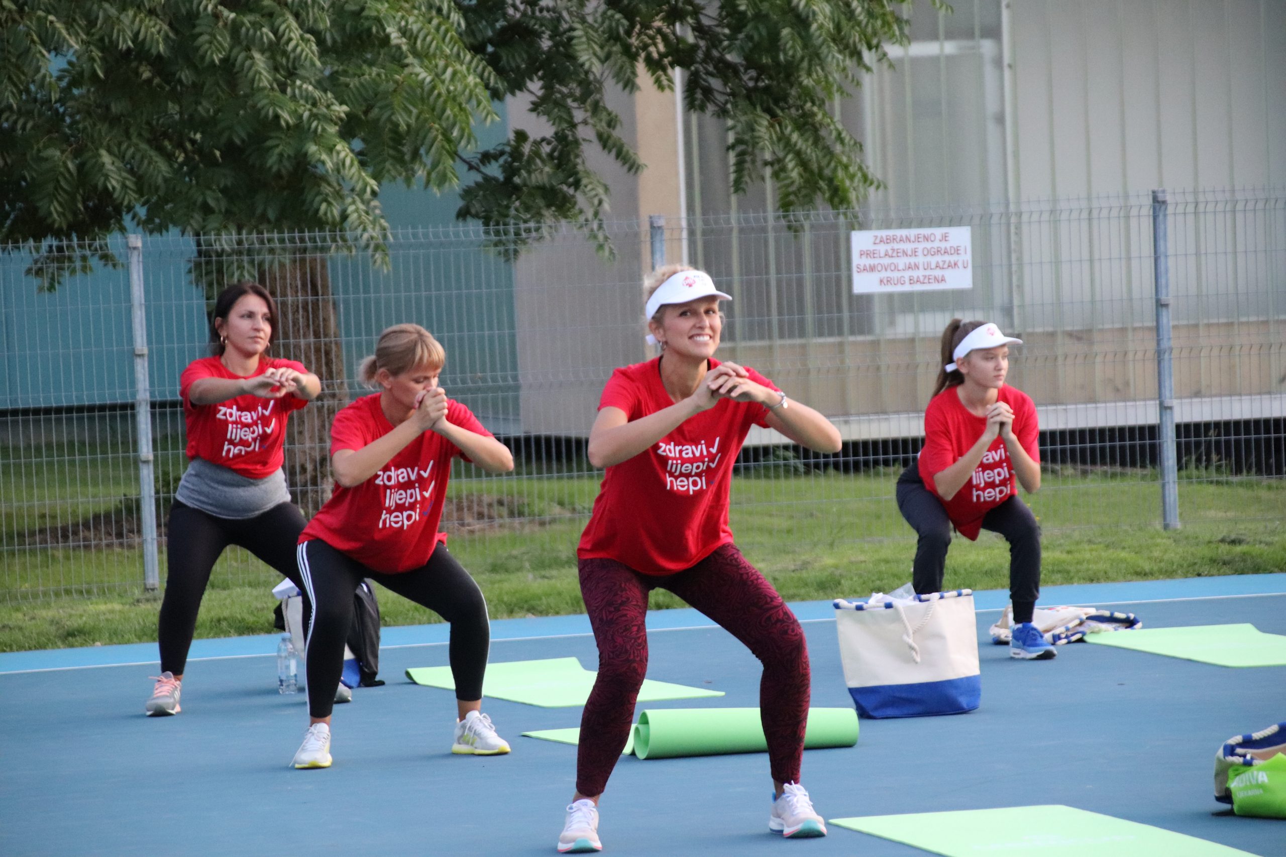Oči sudionica punih sat vremena bile su uprte u njihovog trenera, Nuštarca Luku Šukera, koji ih je svojim vježbama educirao, zabavio, ali i dobro oznojio. No, što je najvažnije, pokazao im vježbe koje bez ikakvih komplikacija mogu uvesti u svoju svakodnevicu. Uz Luku je bio još jedan Slavonac, voditelj trenerskog tima Ivan Antunović.