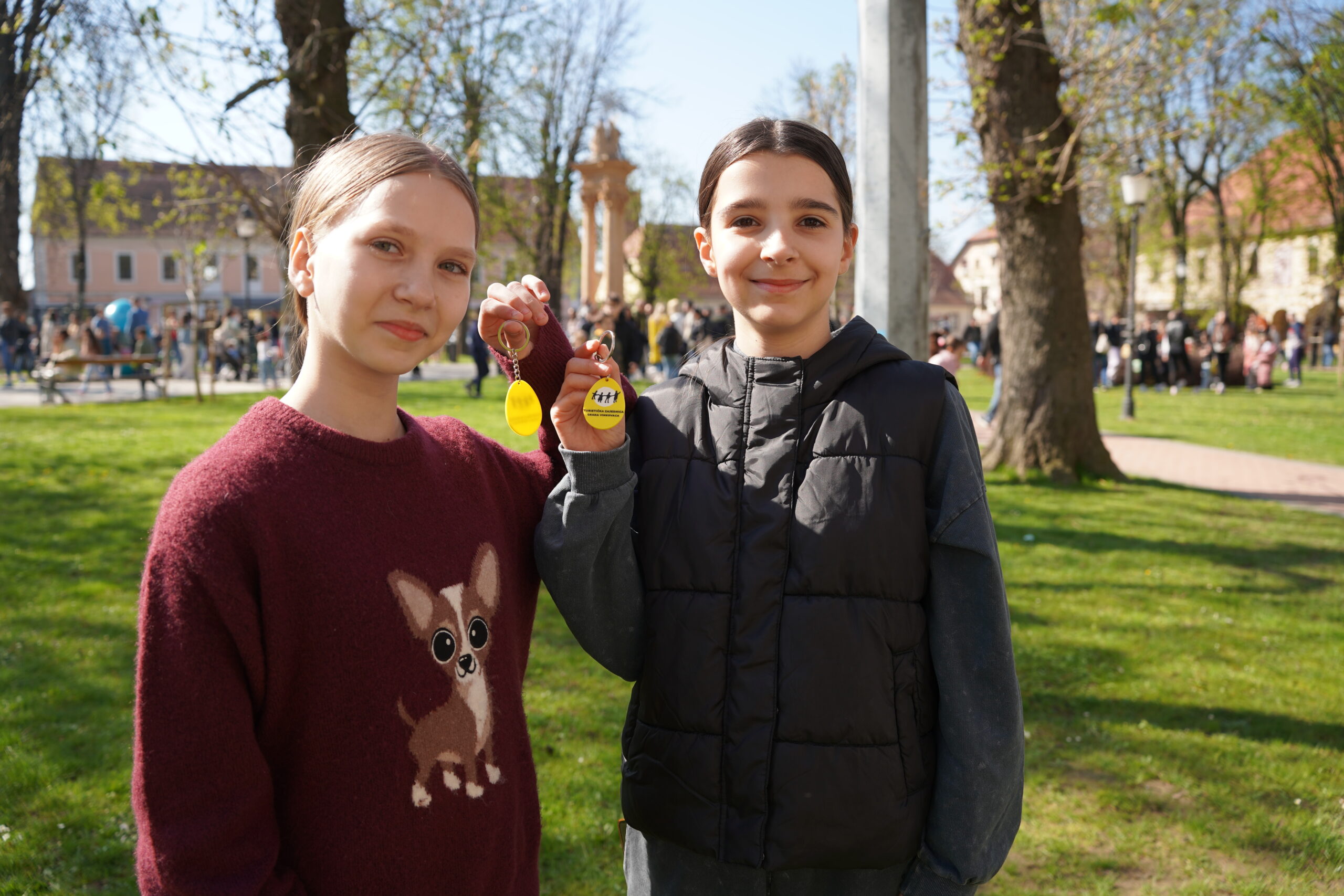 Anđela Tekić Vranjić i Ivona Božić pronašle su jedno jaje zakačeno na drvetu, dok je drugo bilo u blizini jedne klupe na podu. „Tražile smo zajedno. Možda je malo bilo lakše za pronaći jaja, ali kasnije je dosta teže kada ih je manje. Lijepo nam je ovdje i sjajno se zabavljamo”, naglasile su.