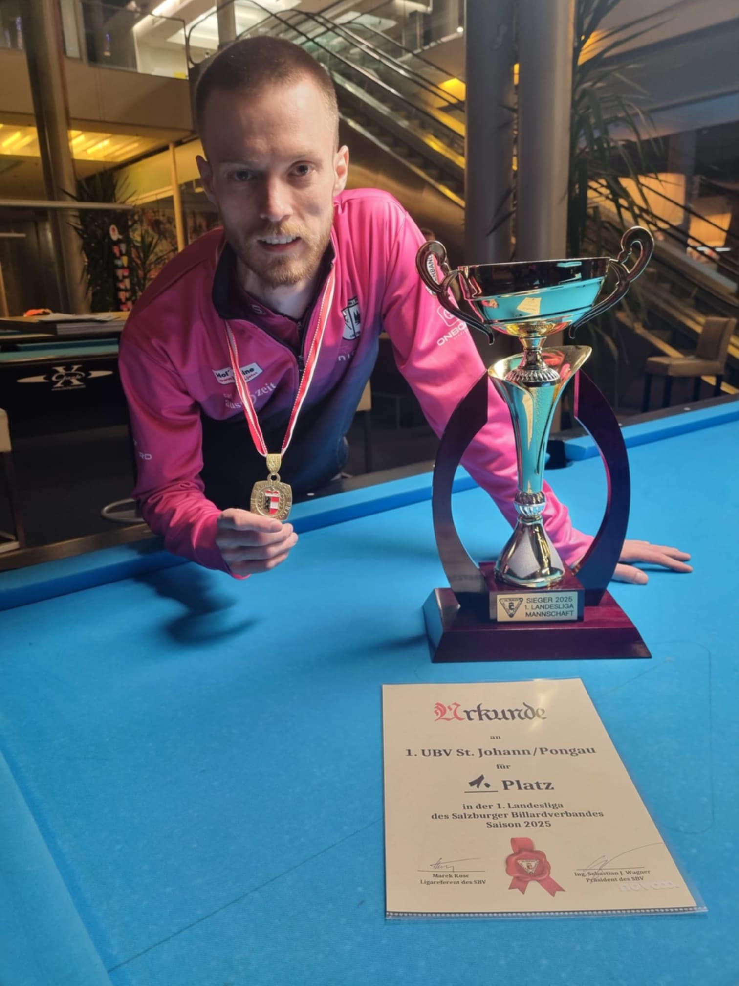 Vinkovčanin Roberto Savčić sa svojim timom 1. Union Billard Club St. Johann im Pongau postao je državnim prvakom pokrajine Salzburg u 1. Landesligi.