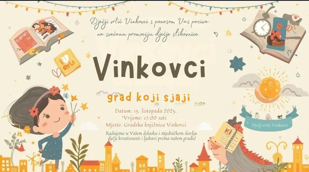 Mjesec hrvatske knjige u Gradskoj knjižnici i čitaonici Vinkovci, 15. listopada otvara predstavljanje druge slikovnice nakladnika Dječjeg vrtića Vinkovci pod nazivom “Vinkovci grad koji sjaji”.