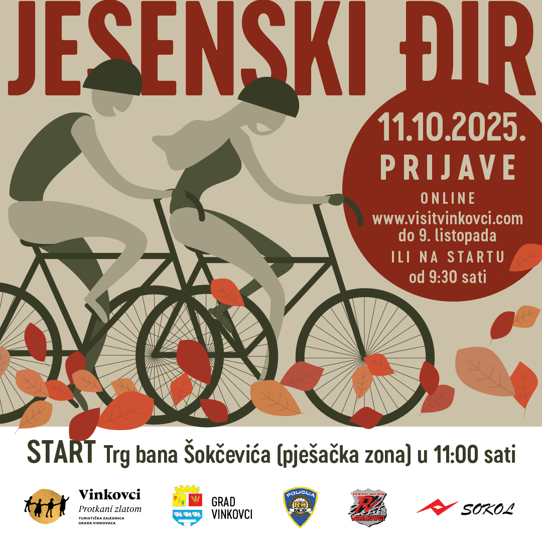 Nakon uspješne proljetne vožnje Tour Natur, Turistička zajednica grada Vinkovaca najavljuje novu rekreativnu avanturu – Jesenski đir, koji će se održati sutra s početkom u 11 sati. Ova vožnja na dva kotača ponovno okuplja zaljubljenike u biciklizam, rekreaciju i dobro društvo, nudeći pritom priliku da se grad upozna iz jedne drugačije perspektive. „Polazak je s Trga bana Šokčevića, a cilj kao i prošle godine na Salašu Tena. Ruta duga oko 15 kilometara pomalo je razigrana i zanimljiva – osmislili smo je tako da sudionicima pokažemo različite dijelove grada i neke nove sadržaje. Proći ćemo pored najvećeg dječjeg igrališta Papuk, novog vrtića te uz obalu Bosuta koji je u svako godišnje doba prekrasna“, istaknula je direktorica Turističke zajednice, Martina Matković.