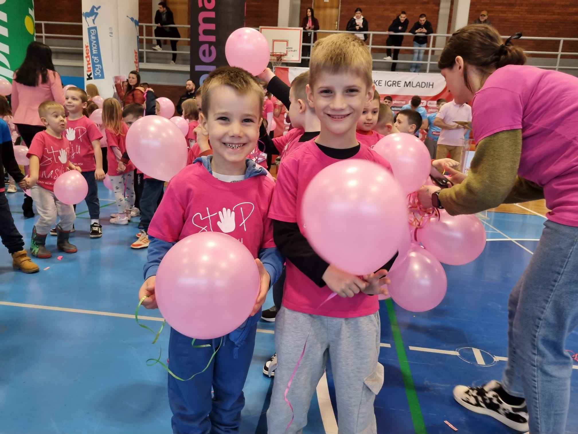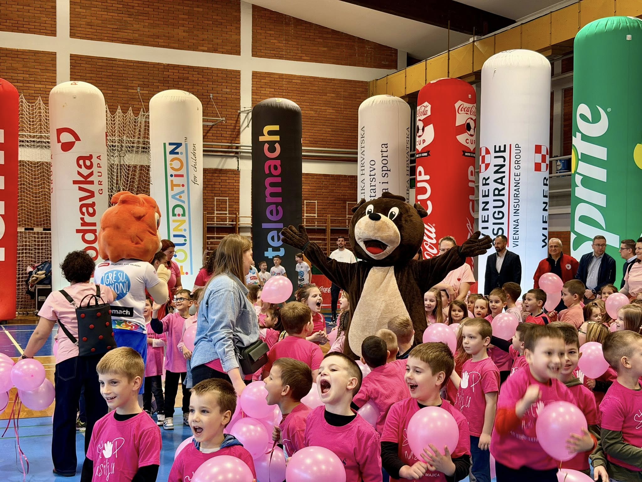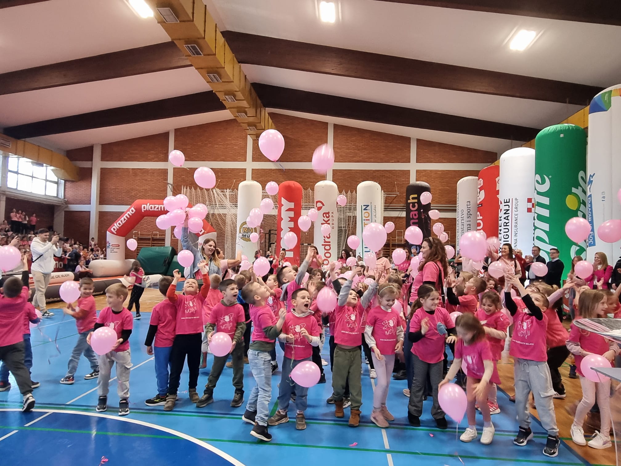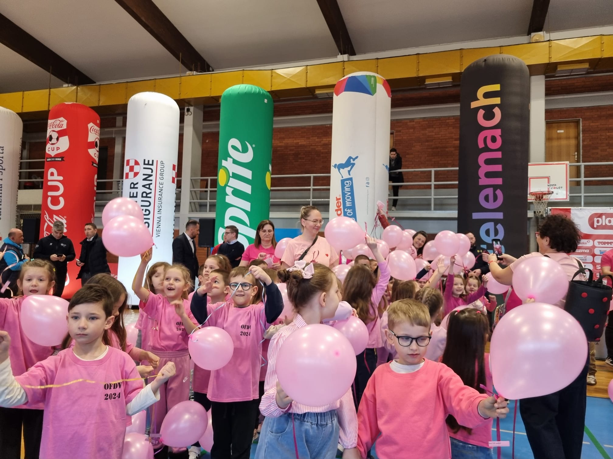 S tom porukom ružičaste majice danas su odjenuli mališani Dječjeg vrtića Vinkovci te, u društvu Mažoretkinja općine Nuštar, pustili ružičaste balone i podijelili promotivne materijale djeci i mladima, koji su se okupili u dvorani OŠ “Antun Gustav Matoš” na Telemach Danu sporta u organizaciji Plazma Sportskih igara mladih.