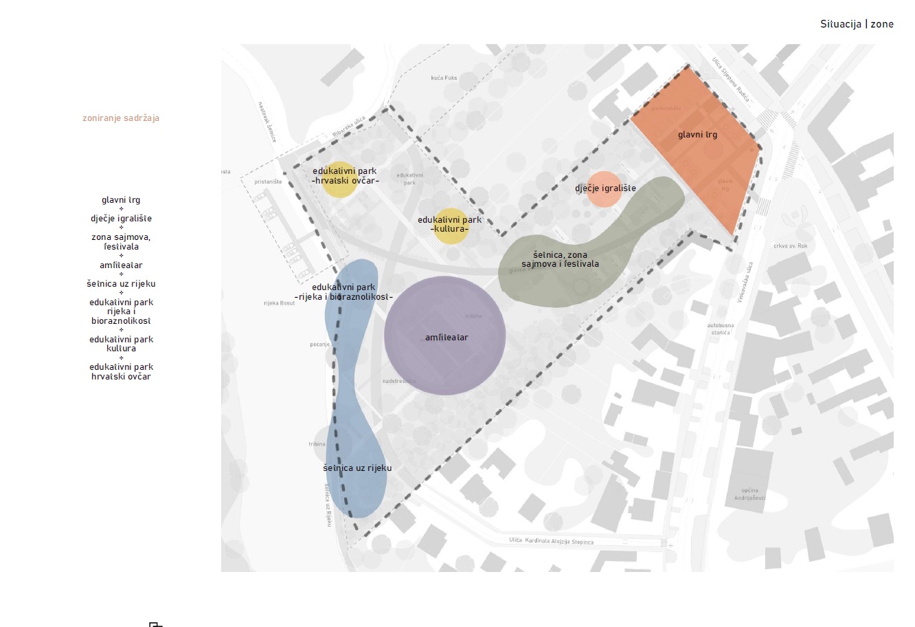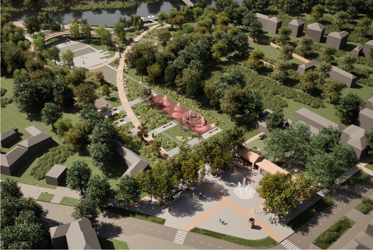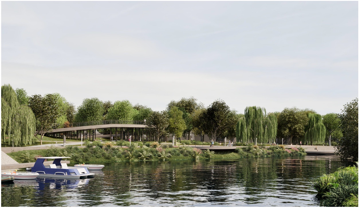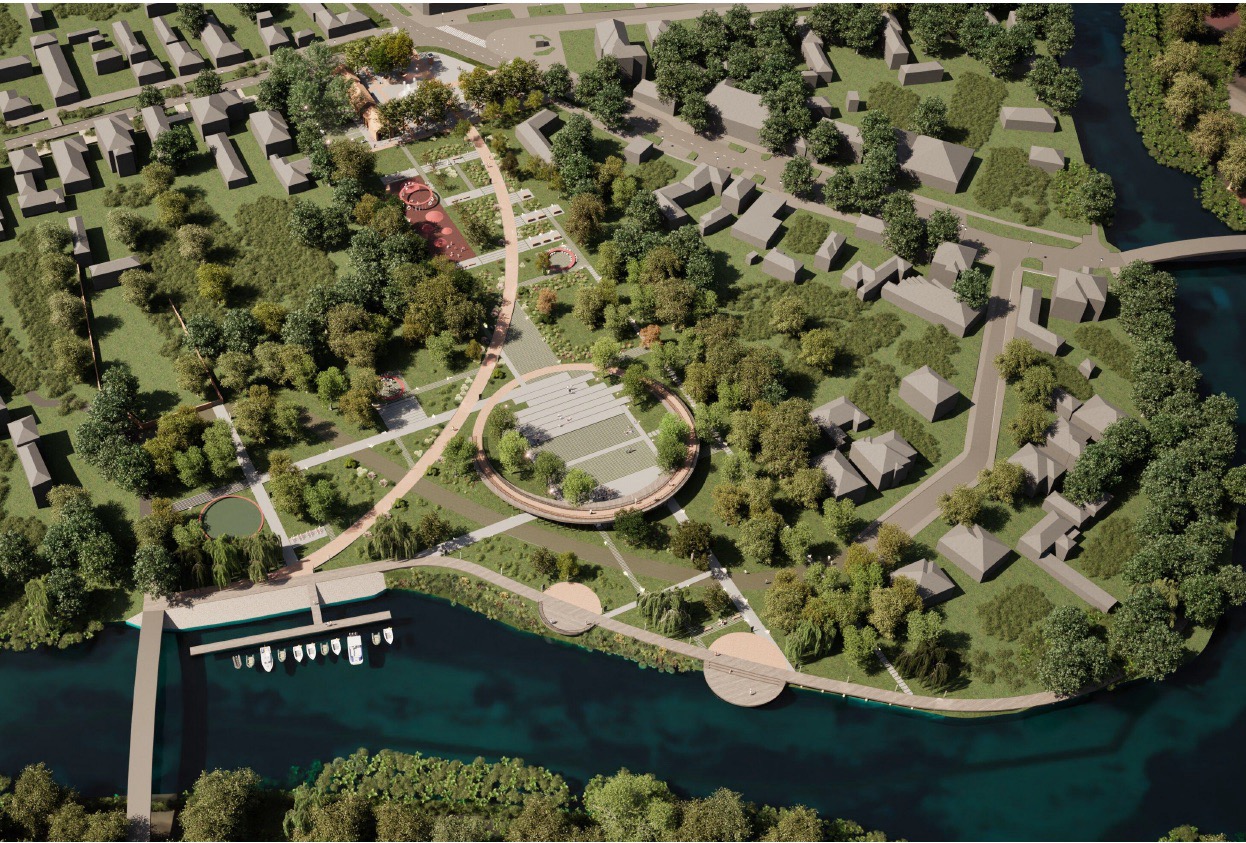 Riječ je o projektu koji donosi potpunu transformaciju prostora uz rijeku Bosut, stvarajući suvremeni, multifunkcionalni javni prostor koji objedinjuje prirodu, infrastrukturu i identitet. Projekt je organiziran kroz više međusobno povezanih funkcionalnih cjelina te uključuje uređenje glavnog trga s fontanom i urbanim sadržajima, dječjeg igrališta i obiteljskih zona, edukativnih parkova (hrvatski ovčar, kultura, rijeka i bioraznolikost), središnjeg amfiteatra za kulturna i društvena događanja, kao i zone sajmova i festivala. Uz to, projekt obuhvaća hortikulturno uređenje i sadnju autohtonih biljnih vrsta, izgradnju šetnica i platformi iznad rijeke Bosut, vidikovac kao novu atraktivnu točku prostora, prateće objekte i sadržaje za boravak i rekreaciju, implementaciju moderne javne rasvjete i digitalnih elemenata, kao i rješenja pristupačnosti, uključujući podizne platforme.